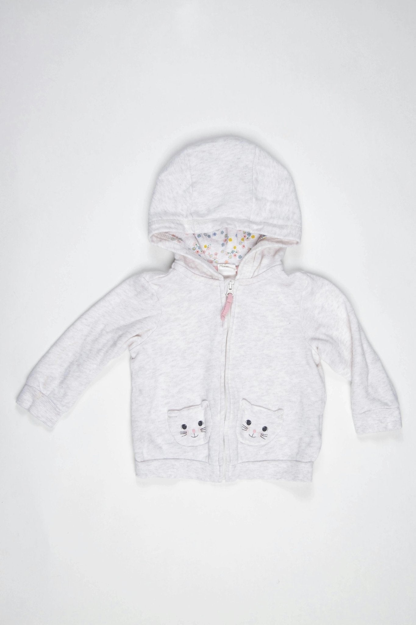 Casaca beige con bolsillos de gatito, 100% algodón organico. Tiene una manchita en el cierre - H & M