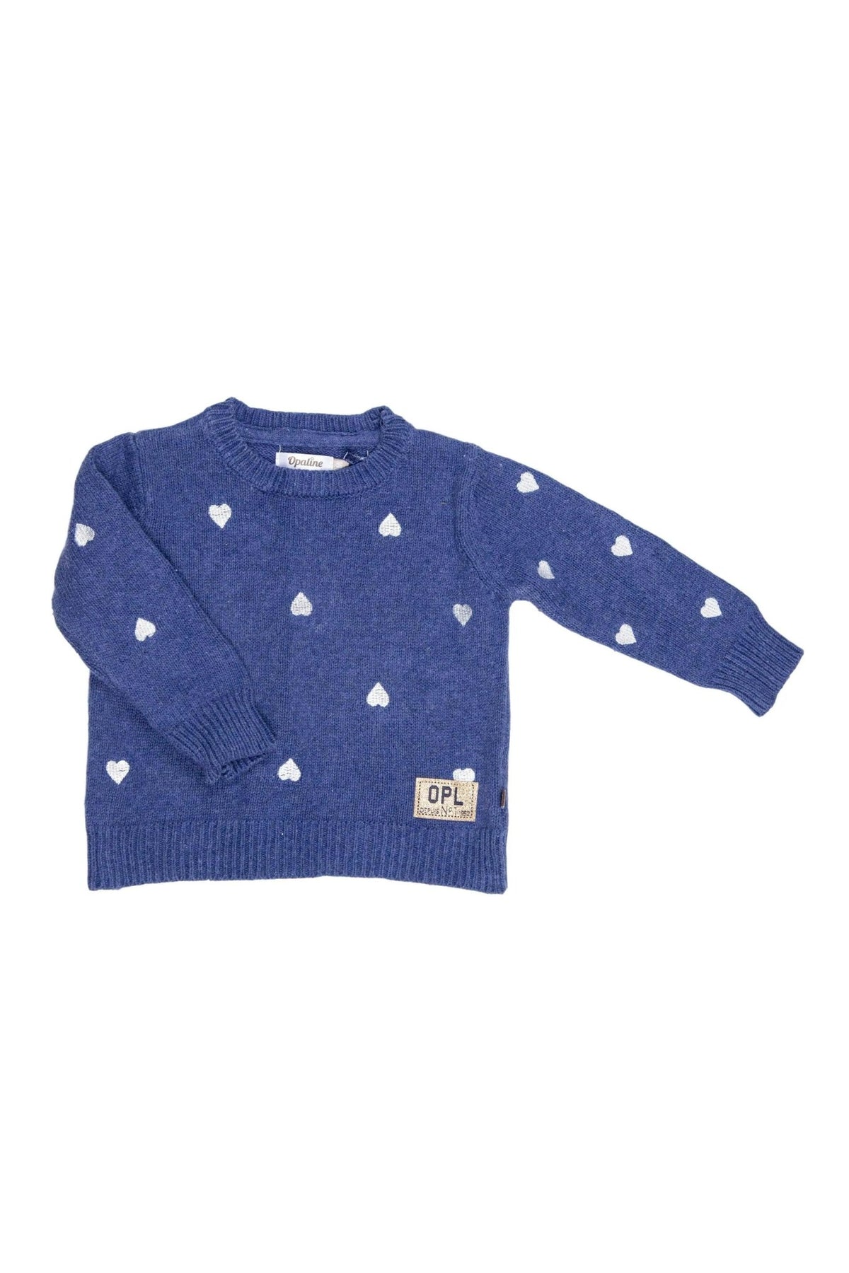 Chompa azul con bordado de corazones 100% algodón - Opaline