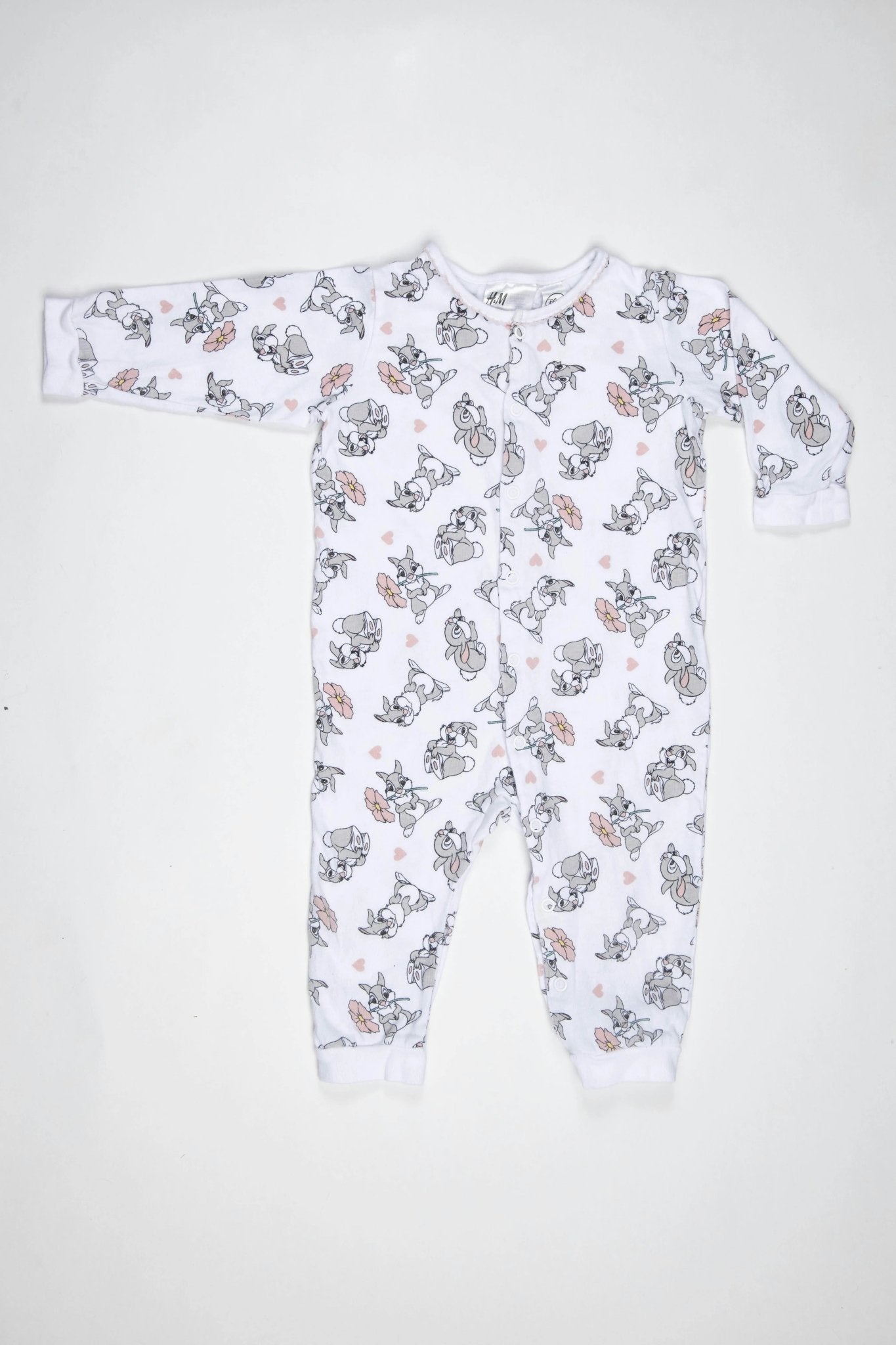 Enterizo sin pie, blanca con conejitos, 100% algodón - H & M