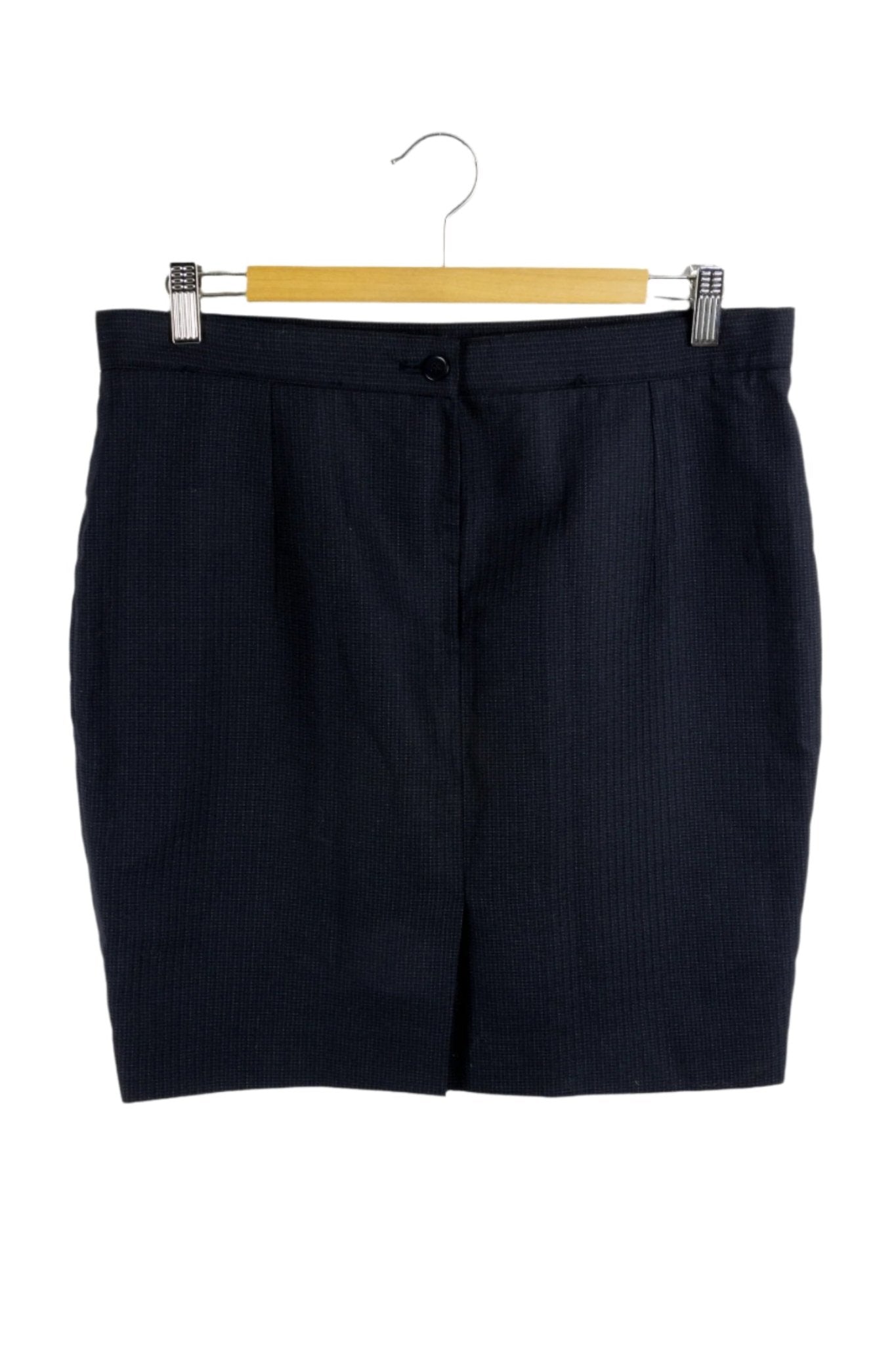 Falda de vestir Barrington azul marino texturizado entretejido cierre atrás y botón