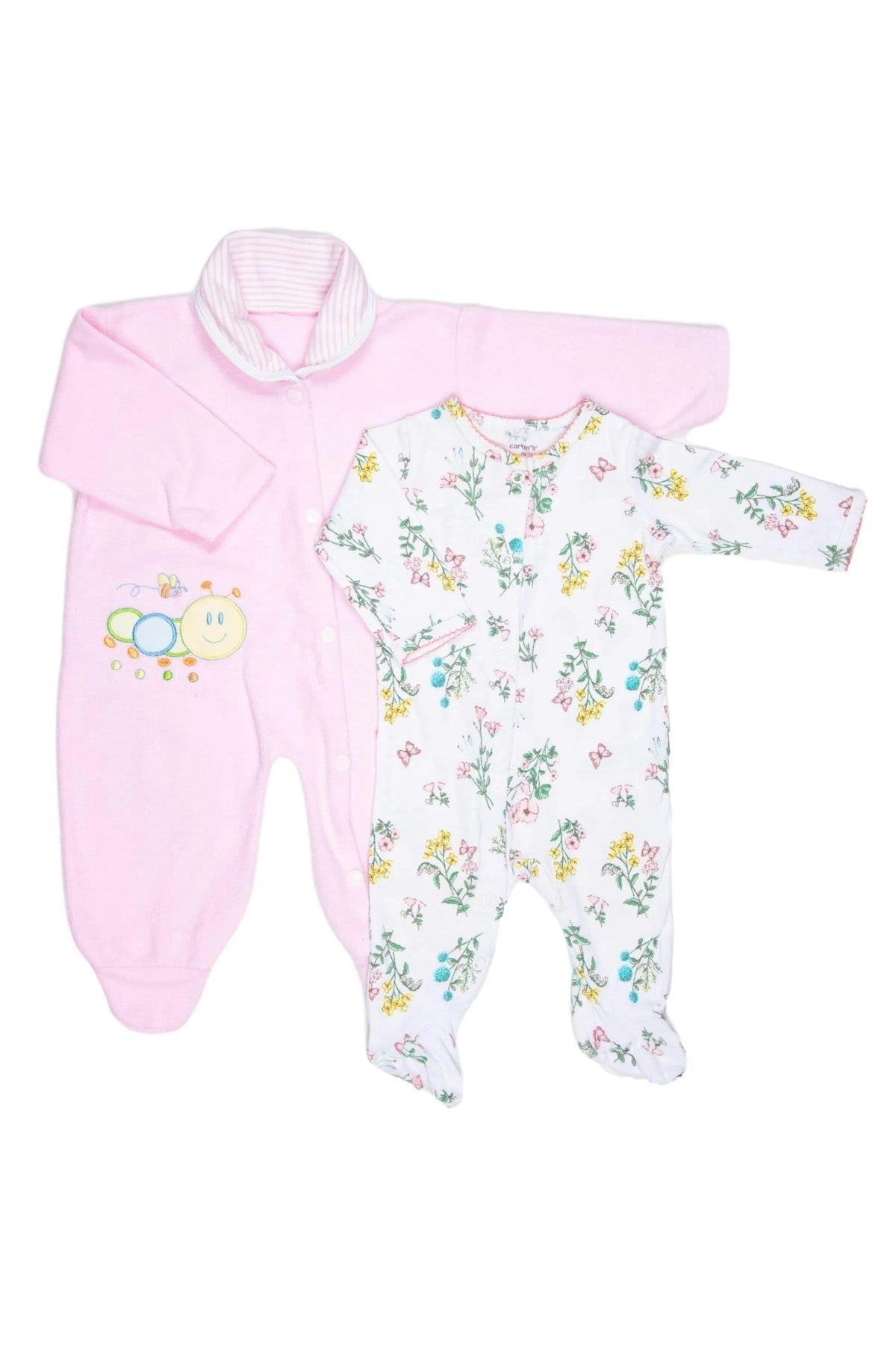 Pack de dos pijamas. Carter´s blanca con flores, y otra sin marca de polar bordado - Carter's