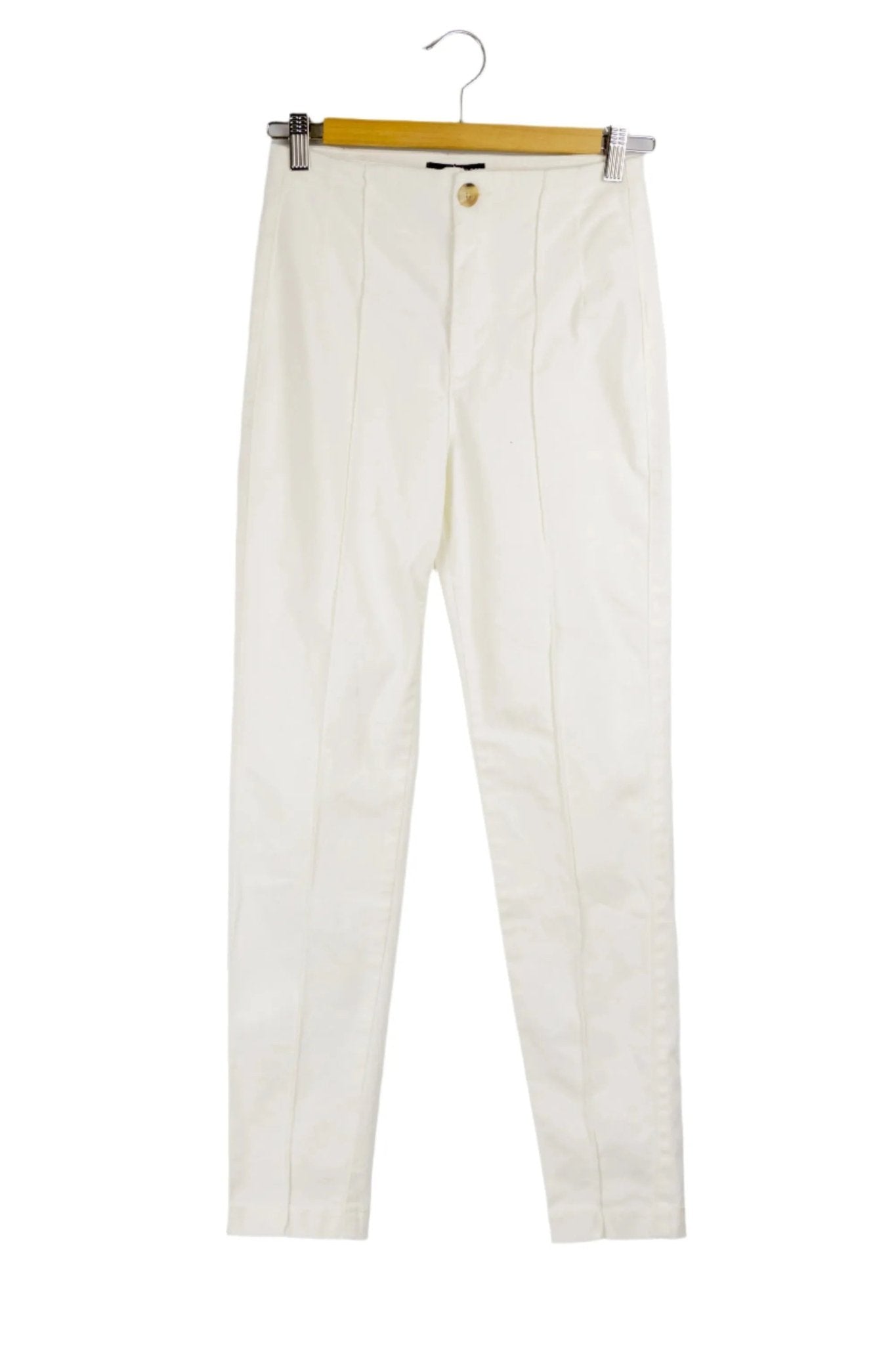 Pantalón blanco Mossimo, pliza a lo largo del pantalón en cada pierna y botón marrón en frente, pequeñas plizas en cintura. Talla 26 nuevo con etiqueta