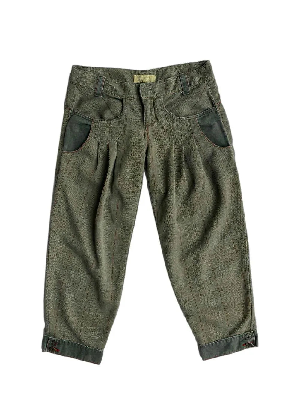 Pantalón chavo KIDS MADE HERE color verde militar. Semicadera. Bolsillos funcionales. Semicadera: 74 cm. Tiro: 19 cm. Altura: 75 cm.