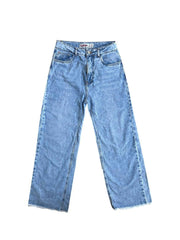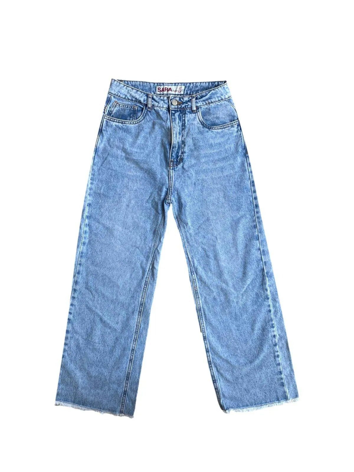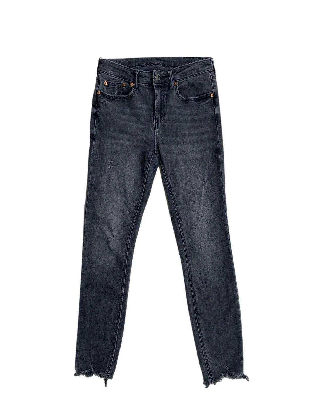 Pantalón jean gris oscuro Zara con rasgados en la basta. Cintura: 70cm, largo: 94cm