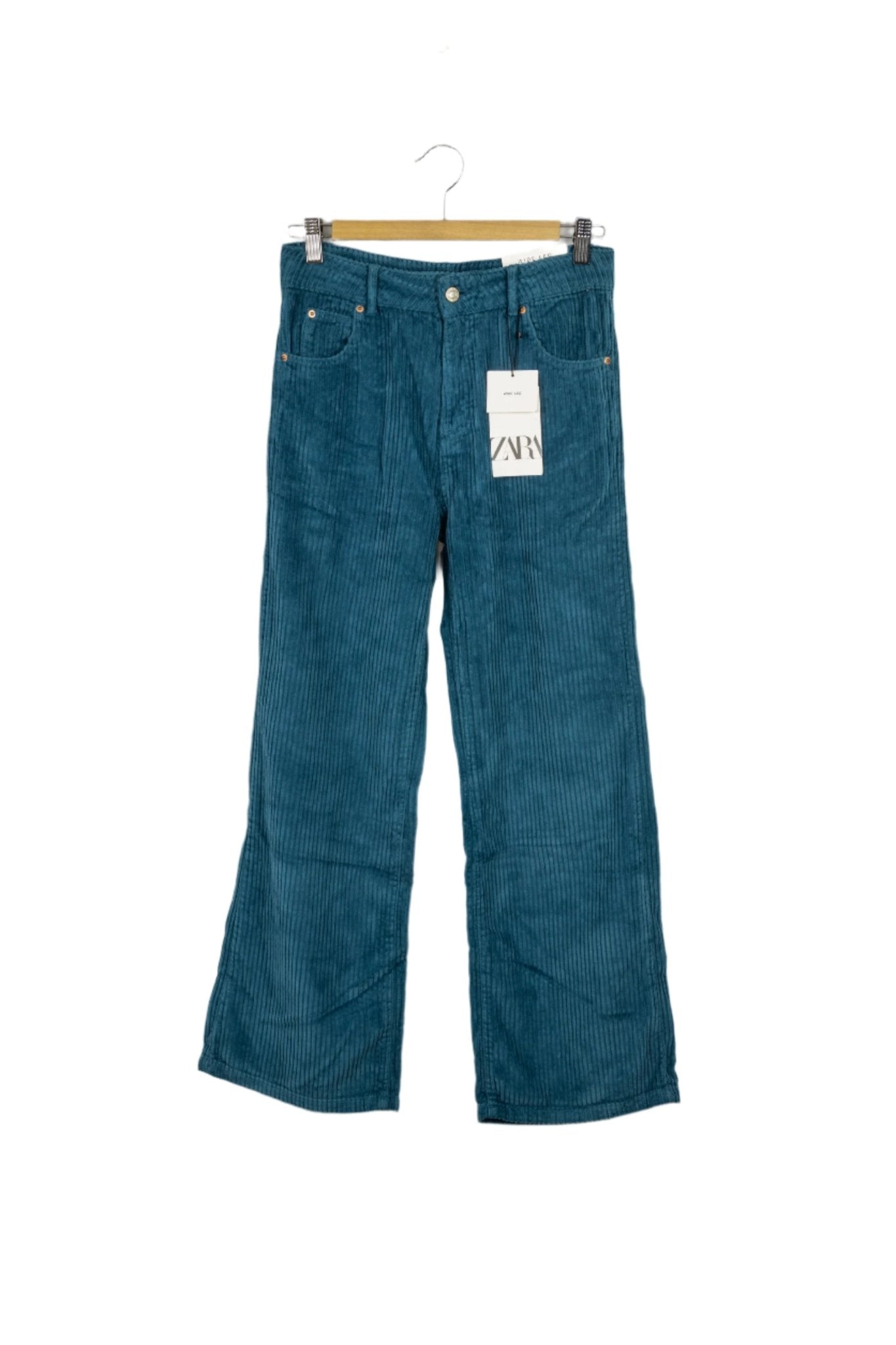 Pantalón wide leg Zara corduroy azul. Cintura: 70cm, largo: 94cm.