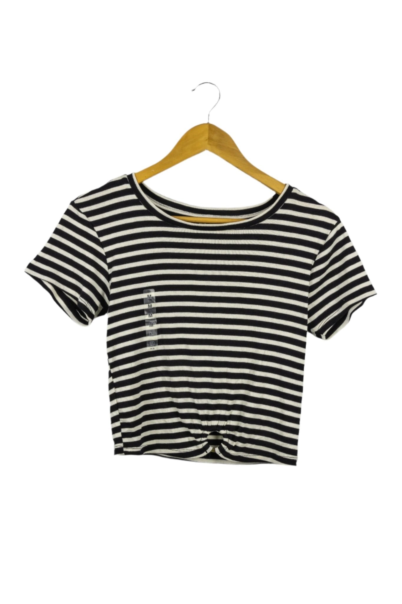 Polo crop Index blanco y negro a rayas horizontales, cuello redondo, manga corta. Busto 80 cm. Largo 48 cm.