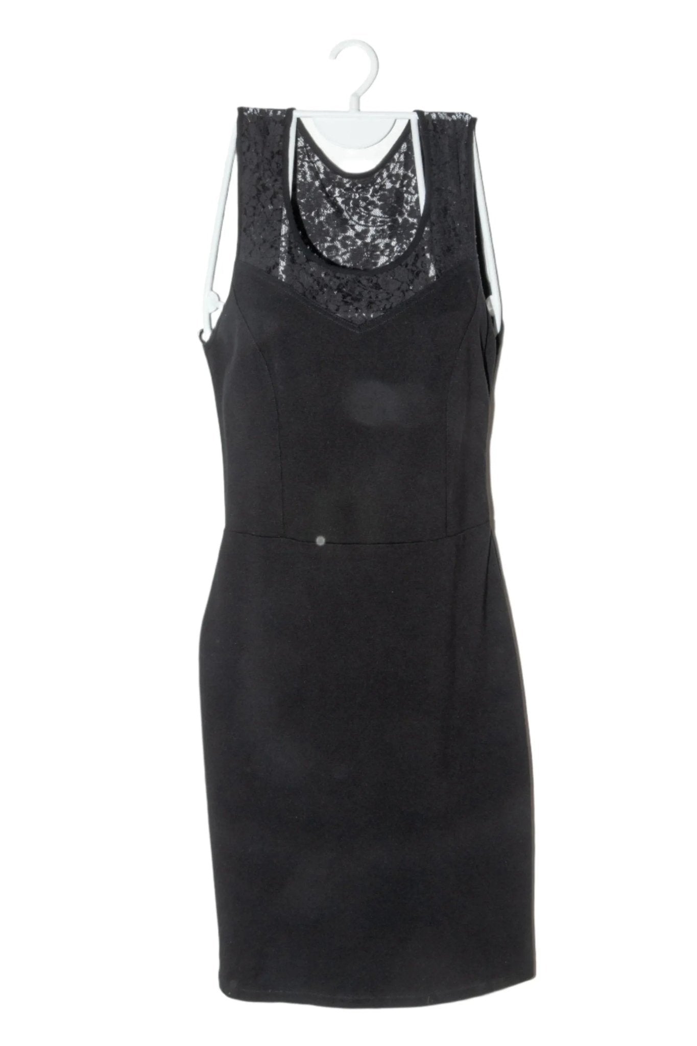 Vestido Basement de color negro, con encaje en parte superior, cuello circular, manga cero.Busto:80cm.Largo:95cm