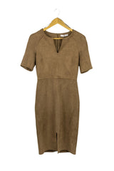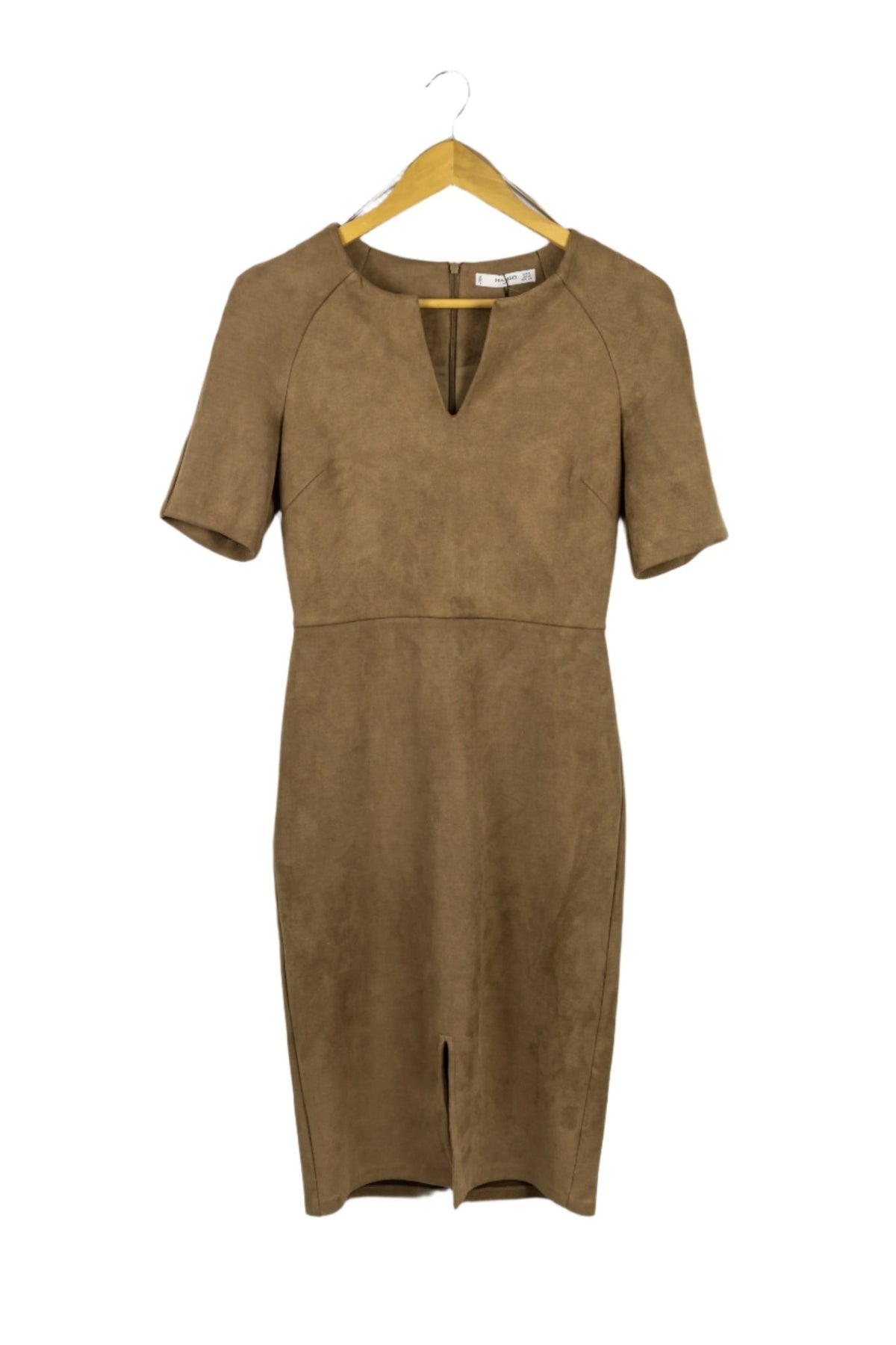 Vestido Mango de suede camle manga corte, cuerllo redondo con corte. Abertura central en la parte inferior. Busto: 90 cm. Largo: 98 cm.