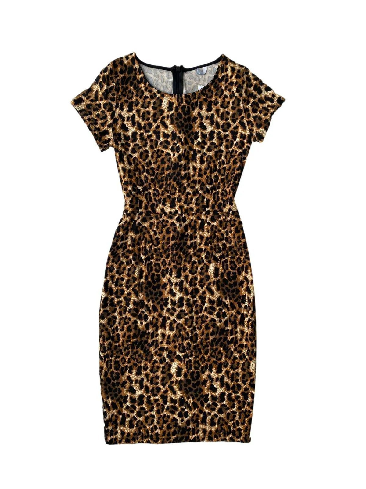 Vestido NINA animal print con hebilla posterior, talla XS.