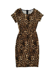 Vestido nina, animal print, hebilla en cintura trasera, cuello redondo. Busto:66cm.Largo:86cm